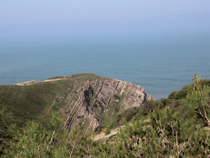 O percurso traçado permite descobrir a biodiversidade da serra e as particularidades geológicas da Área Protegida do Monumento Natural do Cabo Mondego. No que concerne à vegetação, a associação mediterrâneo-atlântica possibilita uma diversidade florística notável, onde se destacam o carvalho-português, a aroeira, o pilriteiro, o abrunheiro-bravo, o sanguinho-das-sebes e o pinheiro-bravo. O sub-coberto destes bosques mistos alberga uma grande diversidade de espécies arbustivas e herbáceas, características de solos calcários e pedregosos, como a pascoinha, o carrasco, o trovisco, a madressilva, a murta, o tojo, a esteva, a arruda, a alcachofra-brava, a Salvia sclareoides (endemismo Ibérico) e algumas orquídeas como o satirião-menor, a salepeira-grande, a Cephalanthera longifolia e o abelhão. Partindo deste miradouro e descendo em direção à povoação de Quiaios, somos levados à descoberta de uma cascata singular, onde outrora existiu um moinho, cujos vestígios ainda são visíveis, que seca completamente no verão, mas que no inverno constitui uma admirável queda de água, cujo leito apresenta interessantes formas dos depósitos calcários que descem da serra. Passando as povoações da Praia de Quiaios e da Murtinheira, subindo a serra, somos confrontados com um cenário deslumbrante sobre estas duas praias. Chegados ao miradouro panorâmico sobre o Cabo Mondego, classificado como Monumento Natural desde 2007 e sob gestão do ICNF, que constitui um testemunho da história geológica de Portugal, onde ocorreram alguns episódios importantes da história da Terra na idade do Jurássico (entre os 185 e os 140 milhões de anos), encontram-se extraordinários registos de macrofósseis (lamelibrânquios, gastrópodes, bivalves, braquiópodes, plantas, peixes, crinoides, corais, ostreídeos, belemnoides e amonoides), microfósseis (foraminíferos e nanoplâncton calcário) e icnofósseis. Seguindo o percurso para poente, chega-se ao miradouro com vista sobre o Farol do Cabo Mondego, imóvel classificado de interesse municipal desde 2004, cujo início da construção remonta a 1917, tendo sido precedido por outro, construído mais a sul, que entrou em funcionamento em 1858. No final do percurso pode-se ainda apreciar a Capela de Santo Amaro, erigida no séc. XIX, inserida em plena Mata Nacional do Prazo de Santa Marinha, sob gestão do ICNF, uma área flores- tal com cerca de 400 ha e que proporciona excelentes condições para a prática de desportos ao ar livre, com equipamentos de lazer que convidam a sair de casa. Este parque é ainda uma área com enorme valor ecológico para aqueles que apreciam a natureza. A flora é constituída maioritariamente por espécies plantadas pelos serviços florestais, entre as quais se podem contemplar belos exemplares de cedro-do-bussaco, de eucalipto e de maciços de pinheiro-bravo.